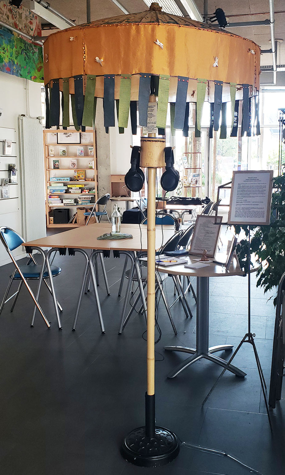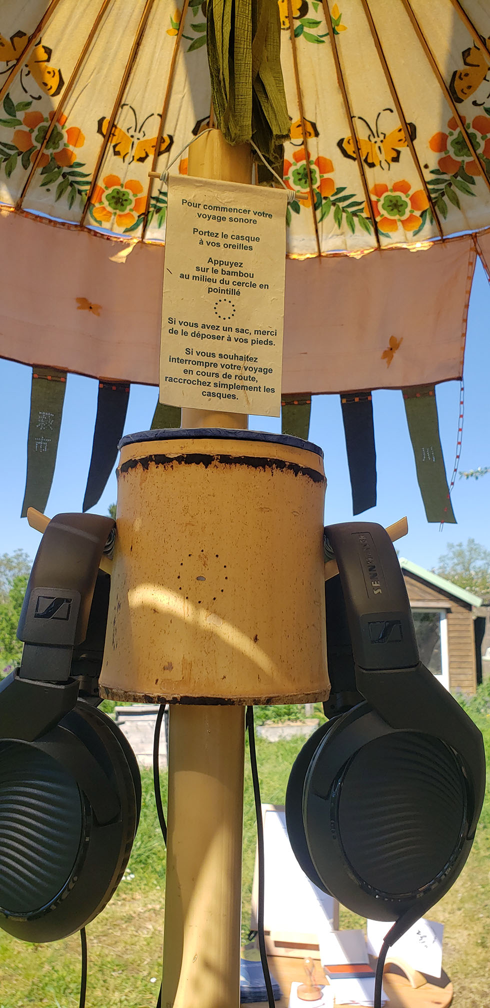 Pour cette occasion, L’Atelier du Furoshiki a proposé l’écoute de sa nouvelle Ombrelle sonore aux papillons Instants d’été japonais qui est maintenant disponible à l’écoute à Ecopôle, 31 rue Louis Joxe à Nantes depuis le 9 avril 2026 et pour 2 mois à l’occasion de la scénographie « S’Entendre ».