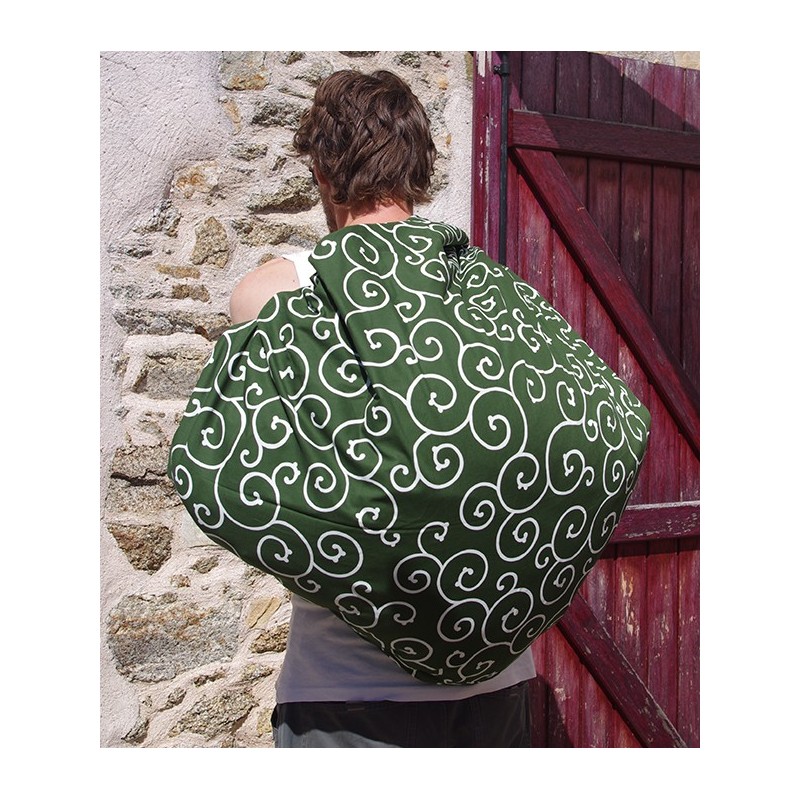 La grande taille de ce furoshiki en fait un allié précieux lors des déménagements, du transport d'objets volumineux comme une guitare.